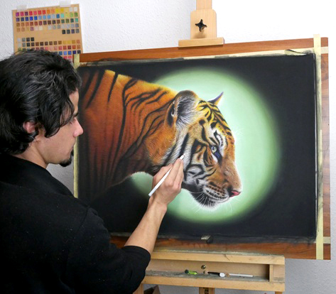 Herr Mohseni zeichnet einen Tiger.